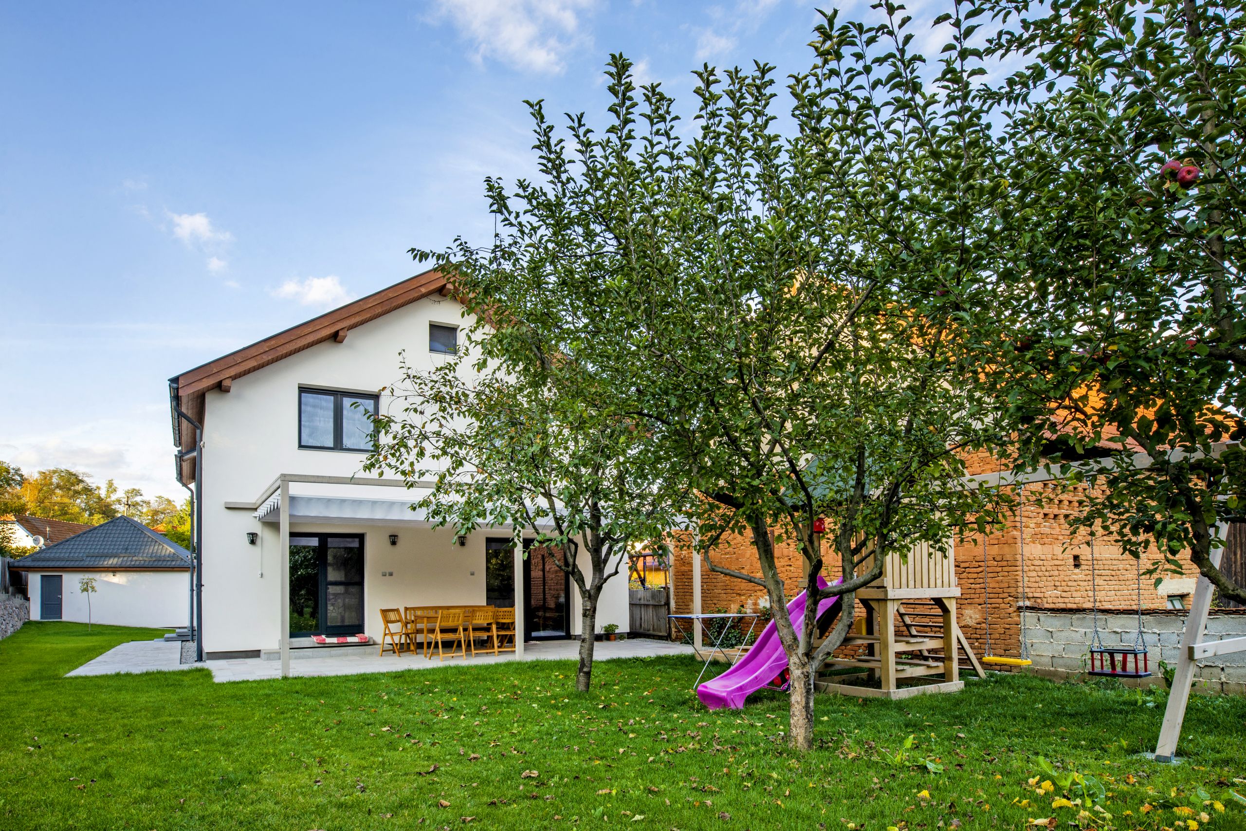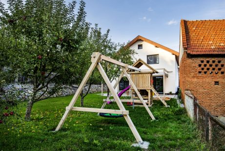 The project beneficiaries purchased a plot of approximately 1,000 sqm, located in an old residential area near the Reformed fortified church and its cemetery. It was decided to preserve the existing building—a modest three-room dwelling originally built in 2001 as a garage and later converted into a residential house by extending it toward the street.