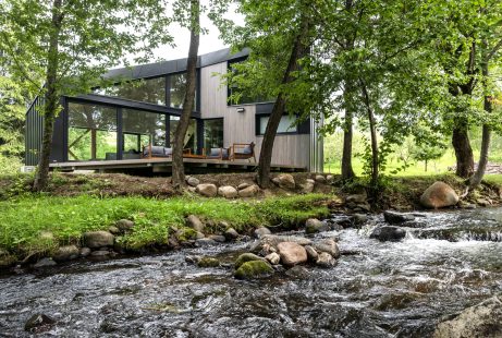 The complex is located in a quiet village, in the valley of the Niraj creek, a place with good potential for tourism, at a distance of 18 km from Sovata. The land is near a fishing complex in the center of the village surrounded by the forest, several pensions and includes two other buildings: an old wooden rural house and a new guest house built on the site of the former barn. The main conceptual ideas for the design were the following: – the building as an elevated landscape, – optimized shape for best solar gain, – making a local microclimate, protection from prevailing winds, – building form creates protected, social hub, – generous covered entrance reveals courtyard inside.